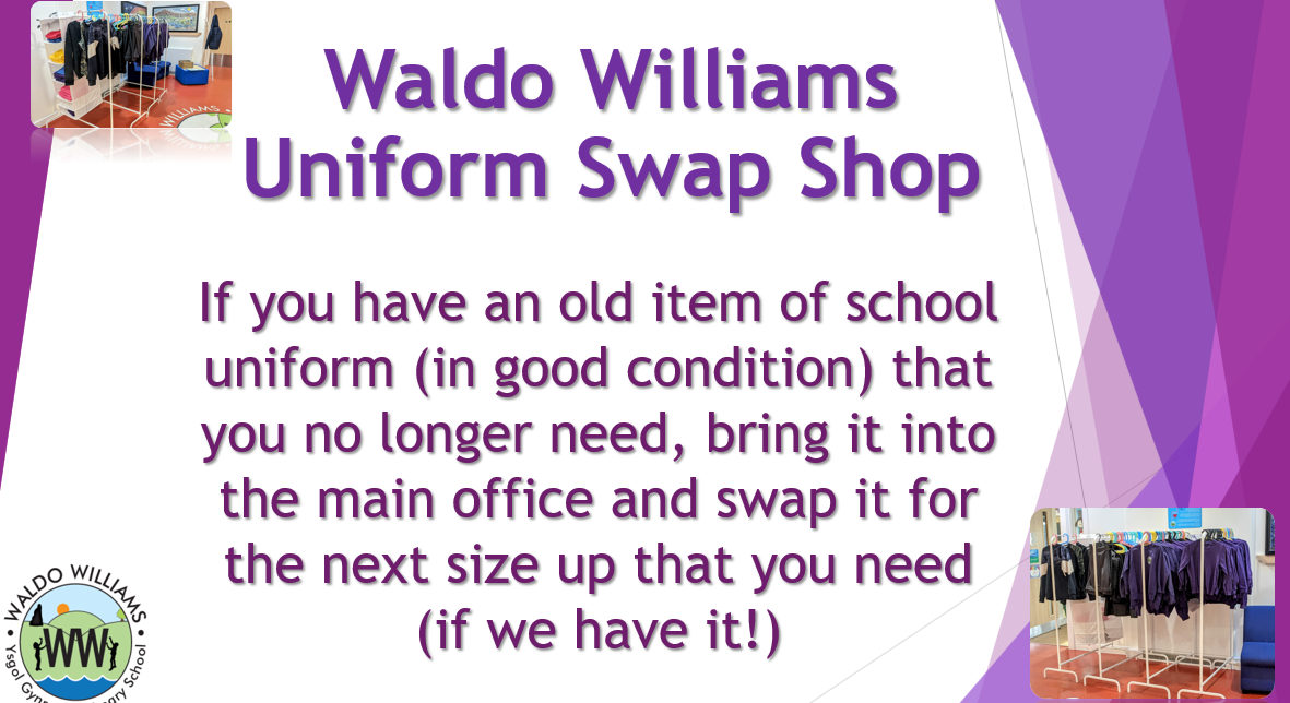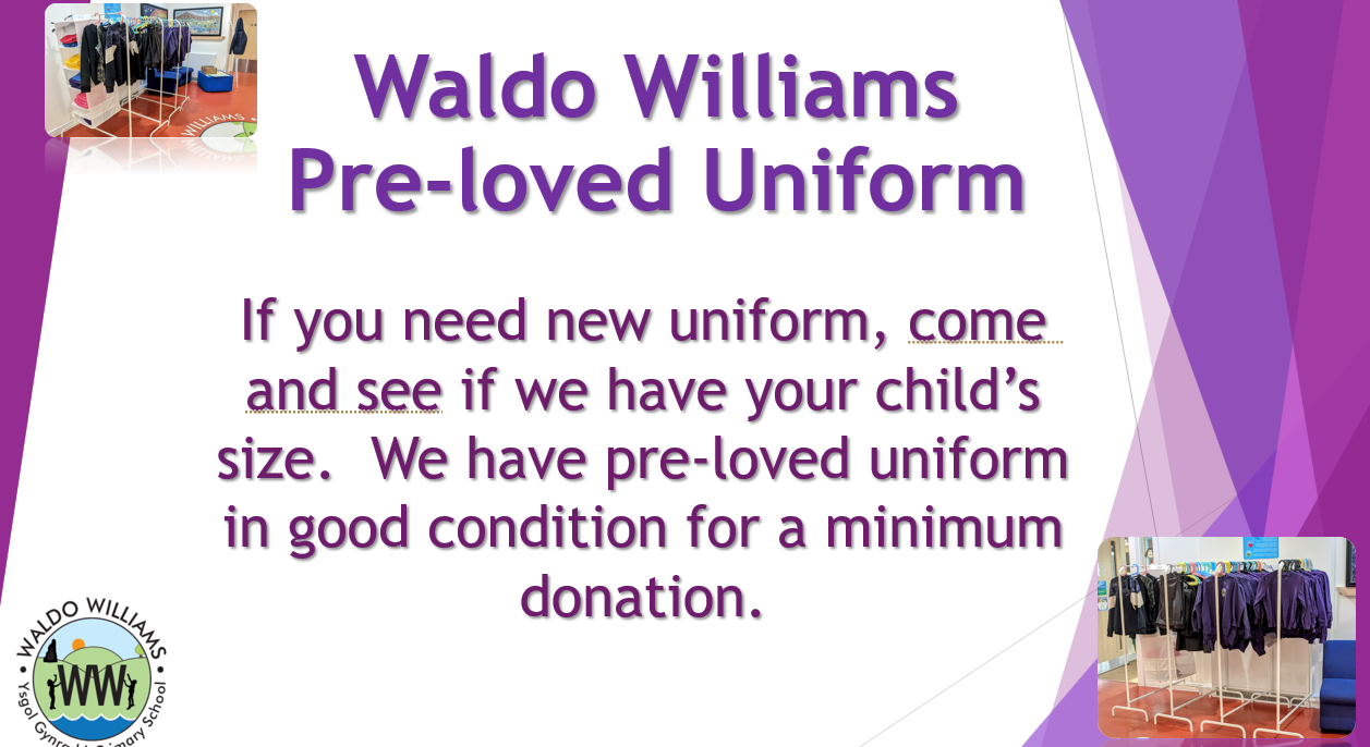 The wearing of school uniform, although optional for primary pupils, is strongly encouraged at Waldo Williams Primary School, to increase the children’s sense of belonging and identity. We would ask that you please support the ethos of the school by sending your children in school uniform. Uniform is available to buy, please contact the school for further information.